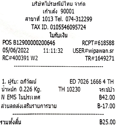 เลขที่พัสดุ EMS ED 702616664 TH ขอบคุณครับ