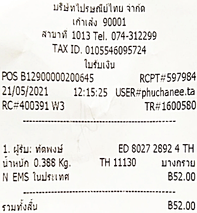 เลขที่พัสดุ EMS ED 802728924 TH ขอบคุณครับ