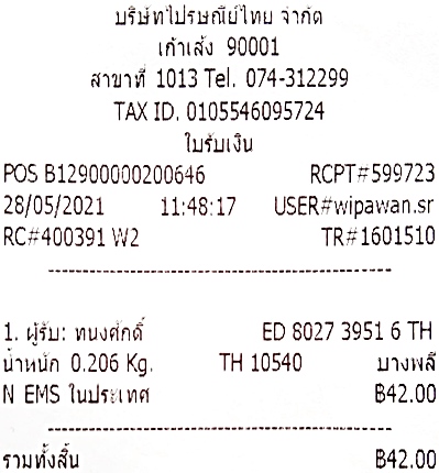 เลขที่พัสดุ EMS ED 802739516 TH ขอบคุณครับ