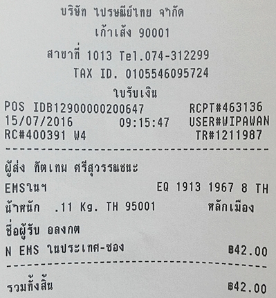 เลขที่พัสดุ EMS EQ 191319678 TH ขอบคุณครับ