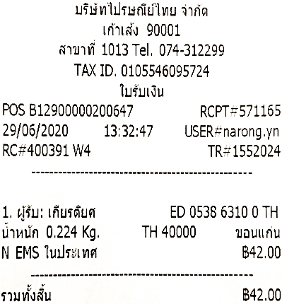 เลขที่พัสดุ EMS ED 053863100 TH ขอบคุณครับ