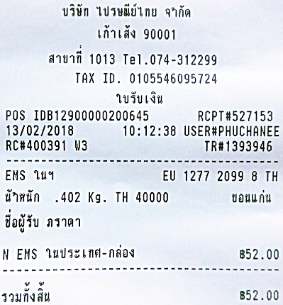 เลขที่พัสดุ EMS EU 127720998  TH ขอบคุณครับ