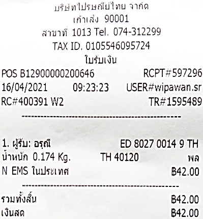 เลขที่พัสดุ EMS ED 802700149 TH ขอบคุณครับ